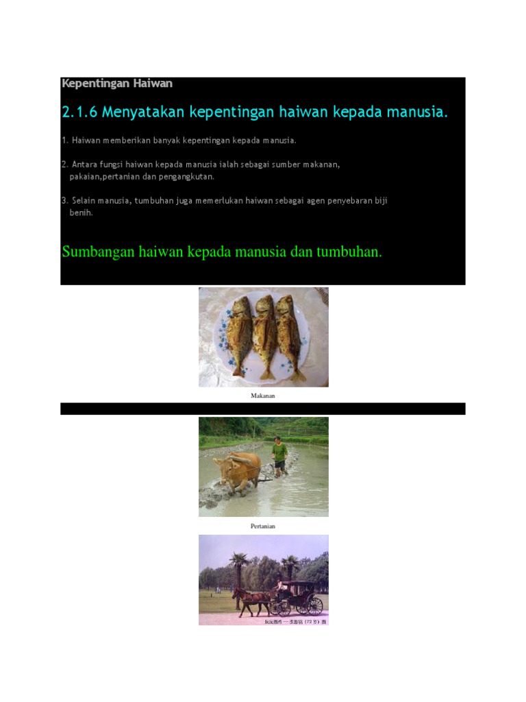 Kepentingan Haiwan Kepada Manusia Tumbuhan Dan Haiwan Pdf